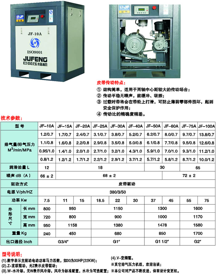 JF Screw Air Compressor-Belt drive